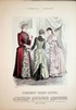 Anzug mit ?berkleid. Anzug mit Mieder-?berkleid. Anzug mit schr?g schliessender Taille. Blatt: 763 aus: Illustrirte Frauen-Zeitung: Ausgabe der Modenwelt mit Unterhaltungsblatt Berlin; Wien; Paris / Leipzig, Verlag Lipperheide / Druck: Carl Marquart, 1888. Modegrafik / Fashion Print original Xylographie altkoloriert, ca. 39 x 27 cm |