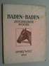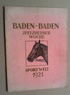 Baden-Baden. Iffezheimer Woche 1921. (Vorschau hg. von der) Sport-Welt. Berlin, Sport-Welt, 1921. 4°. Mit zahlr. Abbildungen. 39 S. OBrosch. (etwas angestaubt). Enthält einen Beitrag zur Geschichte der Pferderennen in Baden-Baden, Erinnerungen sowie eine Rennstatistik ab 1858. - Schönes Exemplar einer hippologischen Privatbibliothek, mit deren dezentem Stempel.
