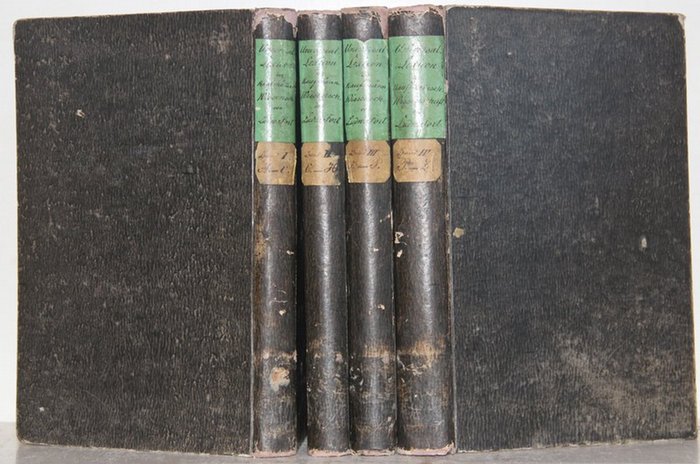 Neuestes Universal-Lexicon der gesammten kaufmännischen Wissenschaften. Für Kaufleute, Fabrikanten und überhaupt jeden Geschäftsmann. 4 Bände (komplett). Leipzig, Arnold, 1852-1853. 24 x 15 cm. Zus. über 2000 Seiten. Schlichte Pappbände der Zeit mit Papierrückenschild (Einbände etwas berieben). *Mit altem Stempel einer Gewerbeschule und deren Exelibris auf dem Innendeckel. Insgesamt gut erhalten, Text sauber.