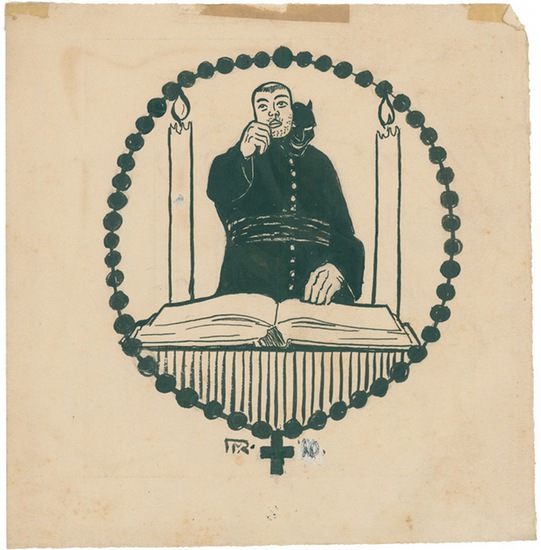 Der falsche Prediger. _. Tuschfeder- und Tuschpinselzeichnung, Deckweiß, Monogrammiert. 22,3:21,6 cm. Literatur: Goldstein, S. 656. Zeichner, Mitarbeiter ?Jugend?.
