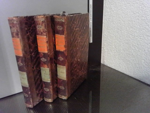 Historische Werke. - 3 Bände: Vermischte Historische Schriften. Heeren, A. H. L., Göttingen, Johann Friedrich Röwer, 1821. 451 S. / 457 S. / 462 S. mit 3 Kupfertafeln, Schrift: Fraktur / Altdeutsche Schrift. gebundene Ausgabe, Halbleder, Band 1 Gelenk eingerissen, sonst gut. Arnold Hermann Ludwig Heeren (* 25. Oktober 1760 in Arbergen bei Bremen; ? 6. März 1842 in Göttingen) war ein deutscher Historiker. Inhalt: Entwicklung der politischen Folgen der Reformation für Europa // Versuch einer Entwickelung der Folgen der Kreuzzüge // Über den Einfluß der Normannen auf die frz. Sprache und Literatur // Aufsätze über Plutarch 19 Jh 2 +++++ 30 Jahre Antiquariat Christmann in Wiesbaden +++++ Wir liefern außer nach Deutschland, nur noch nach Schweiz / Holland / Belgien / Italien / GB / USA / +++ We now only deliver to Switzerland / Holland and Belgium / Italy / GB / USA +++ Keine Lieferung nach Österreich ++++.