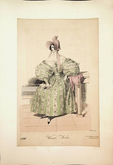 Damenmode 1830 er Jahre ( Aus: Wiener Zeitschrift f?r Kunst, sch?ne Literatur,Theater und Mode) Wien / Vienna, 1833. antiker Stich / antique engraving auf Tr?gerkarton kaschiert, Format der Grafik ca. 21,5 x13,5 cm, Tr?gerkarton ca 27,5 x 18 cm. Wiener Moden XXVIII. Wien Zeitschr. No 83., 11. July 1833.