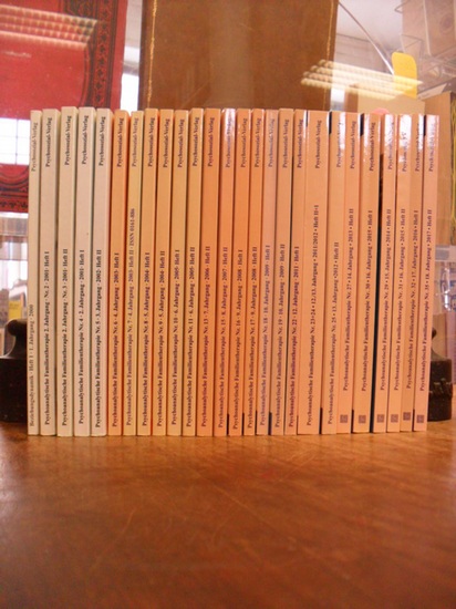 Psychoanalytische Familientherapie - Zeitschrift für Paar-, Familien- und Sozialtherapie (PaFt), Konvolut von 27 Bänden (in 26 Heften) von der Nr. 1 bis Nr. 35, (1. bis 18. Jahrgang), Gießen, Psychosozial-Verlag, 2000-2017. 8°, pro Band ca. 100-120 S., illustr. original Kartonagen, Abholung im Ladengeschäft in Frankfurt am Main möglich - spart die Portokosten. Pickup at the store in Frankfurt am Main is possible ? saves the shipping costs. die ersten 5 Bände mit einem Besitzerstempel auf der ersten Seite, sonst durchgängig schöne, saubere Exemplare (Psy-Soz-L) Vorhanden: Heft 1 (noch unter dem Titel 'Beziehungsdynamik') bis Heft 11, 13, 15, 16, 17, 18, 19, 22, 23-24, 25, 27, 29, 30, 31, 32, und 35. KEIN Einzelverkauf. Die fehlenden Bände können alle noch beim Psychosozial-Verlag für EUR 19,90 bzw. EUR 25,00 (Doppelband) pro Band bestellt werden.