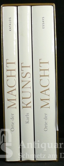 Karl der Grosse. charlemagne. Orte der Macht. Essays [und] Katalog. Karls Kunst. Im Auftrag der Stadt Aachen Herausgegeben von Farnk Pohle, Peter van den Brink und Sarvenaz Ayooghi. Dresden, Sandstein-Verlag 2014. 3 Bände. 4°. 504; 320; 280 S. Original-Pappband mit Schutzumschlag, Schuber. Schutzumschläge mit minimalen Gebrauchsspuren, sehr gutes Exemplar.