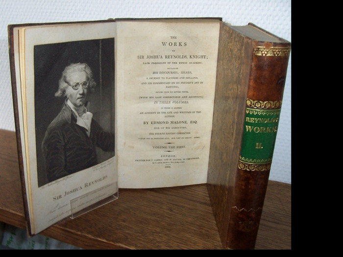 The works. Ed. by E. Malone. The 4th edition corrected. Vol. 1-2 (from 3). London, Cadell a. Davies, 1809. M. gest. Portr. CXXIV S., 2 Bl., 288 S.; 3 Bl., 427 S. Hldr. d. Zt. m. Rsch. u. kl. Rsign. Etwas gebräunt u. braunfl. Joshua Reynolds (1723-1792), bedeutender u. einflussreicher britischer Maler des 18. Jh., er war der erste Präsident der "Royal Academy".