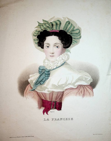 La Francese Milano, Ruspini e Sala. original Kupferstich, handkoloriert, 41 x 30 cm, Blatt mit Randl?suren.