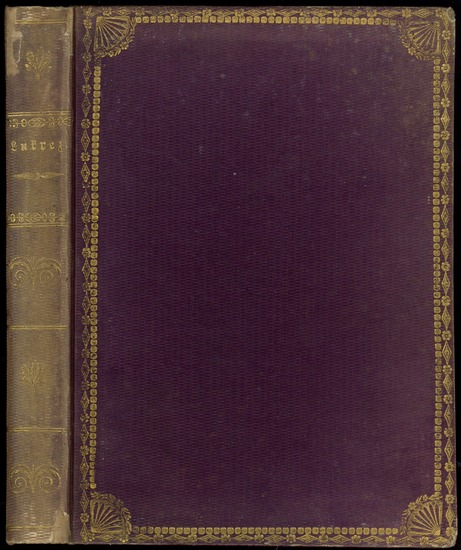 Von der Natur der Dinge. Uebersetzt von Karl Ludwig von Knebel. 2. vermehrte und verbesserte Auflage. Leipzig, Georg Joachim Göschen 1831. * XXVI Seiten, 1 Blatt, 56, 243 Seiten. 20 x 15 cm. Violetter Pappband der Zeit (Rücken verblichen und mit kleinen Fehlstellen am Bezug) mit reicher Rücken- und Deckelvergoldung. *** Goedeke IV/1, 675, 6. Schweiger I, 579. Sammlung Kippenberg I, 646. - Zweite Ausgabe der Übertragung durch Karl Ludwig von Knebel (1744-1834). Die von seinem "Urfreund" Goethe angeregte erste deutsche Lukrez-Übersetzung war zehn Jahre zuvor erstmals erschienen. - "Metrische Übersetzung, die unserer Literatur zu hoher Ehre und wahrhafter Zierde gereicht. Sie gibt das Original treu und mit dichterischem Geiste wieder und steht hinsichtlich des Wohllautes demselben nicht nach" (Schweiger). - Gekrönter Monogrammstempel "F.C."; Dublettenstempel der Großherzoglichen Bibliothek Weimar. - Durchgängig etwas braunfleckig. - Gutes Exemplar mit interessanter Provenienz.