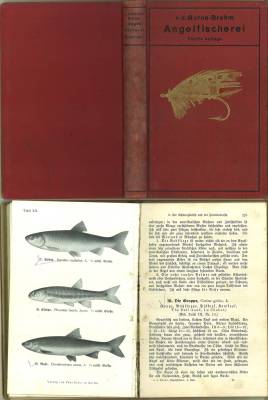 Taschenbuch der Angelfischerei. Neu bearbeitet und ergänzt von Horst Brehm. Mit 389 Textabbildungen, einer Farbendrucktafel und 12 schwarzen Tafeln. Berlin, Parey, 1914. 8°. XII + 348 + 16 S. OLwd., Abbildung. 5. Aufl. Mit allen Tafeln. - Ebd. etwas fleckig vorallem der R., Besitzsign. a. T., einige Anstr. u. Anm. im T., Heftung rostet (deswegen die tafeln etw. gelockert bzw. lose), stockfleckig, im Ganzen gutes Exemplar.